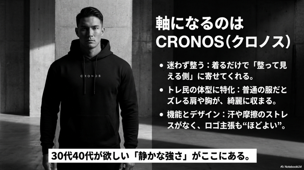 CRONOSはそこがズレにくくて、頑張ってる感を出さずに身体がキレイに見える。
