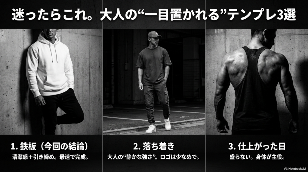 迷ったらこれ:大人の“一目置かれる”テンプレ(コーデ3選)