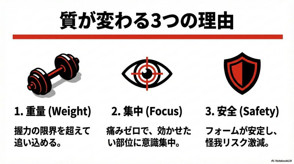 これは「握力補助」だけの話やない。トレーニングの質そのものを底上げする道具の話や。